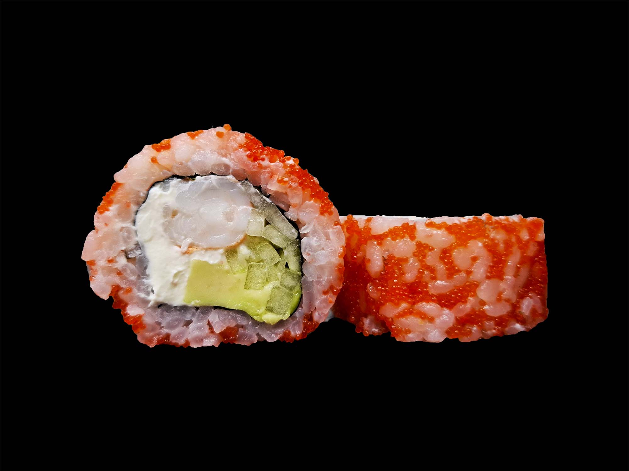 Krewetka, serek kremowy, awokado, ogórek, masago