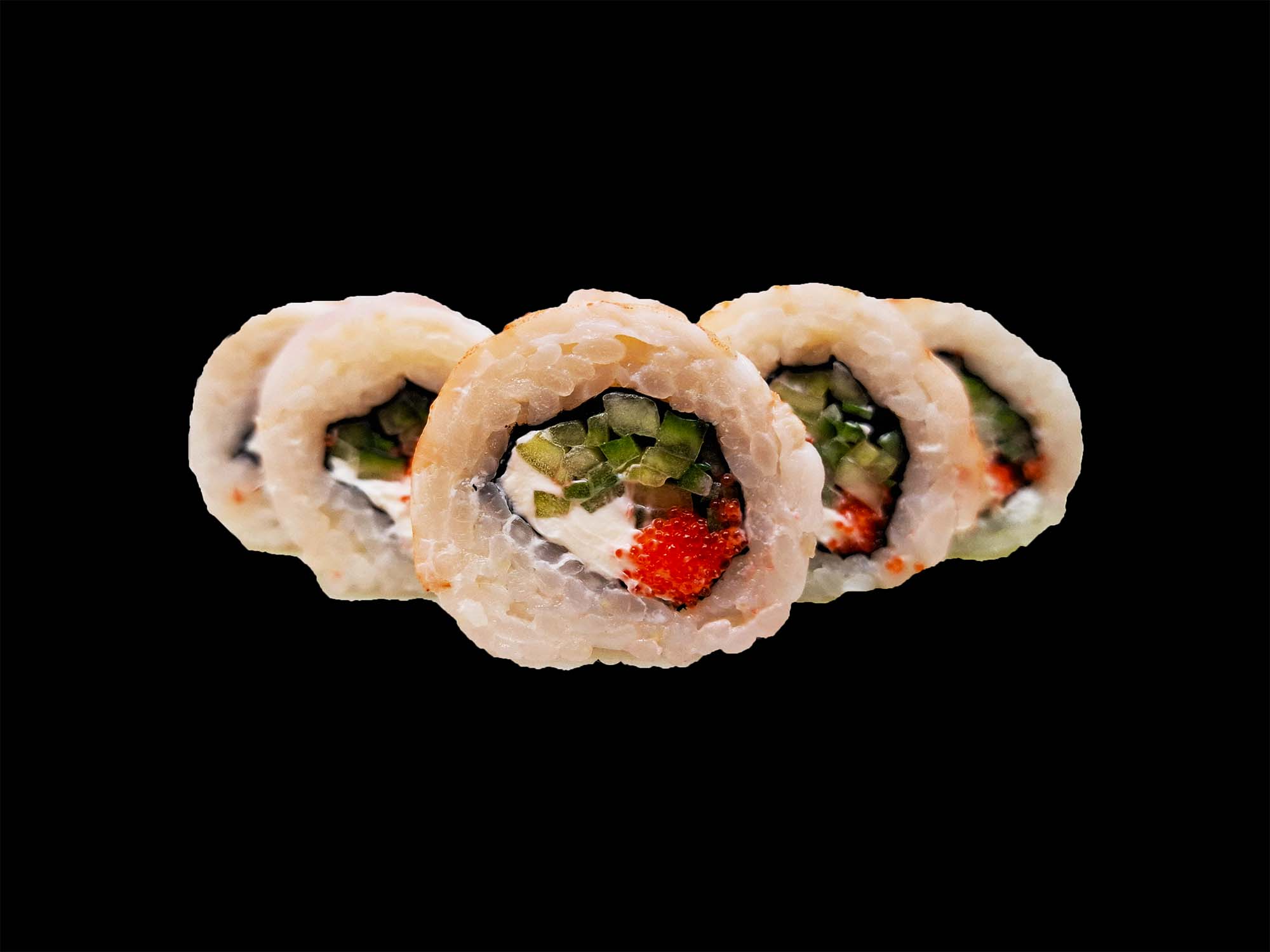 Krewetka, masago, ogórek, serek kremowy