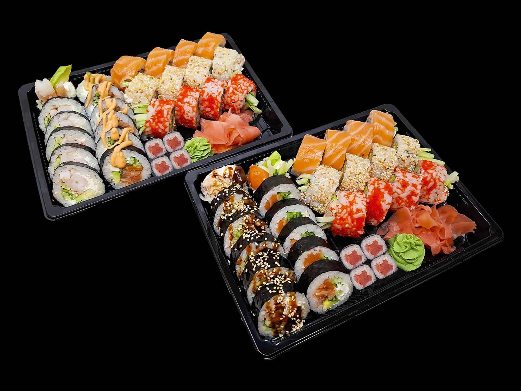 Philadelphia Łosoś 8 szt, California krewetka gold 8 szt, California Łosoś 8 szt, Futo Łosoś surowy 6 szt, Futo z Krewetką 6 szt, Futo Łosoś pieczony 6 szt, Futomaki Łosoś wędzony 6 szt, hoso tuńczyk 8 szt.